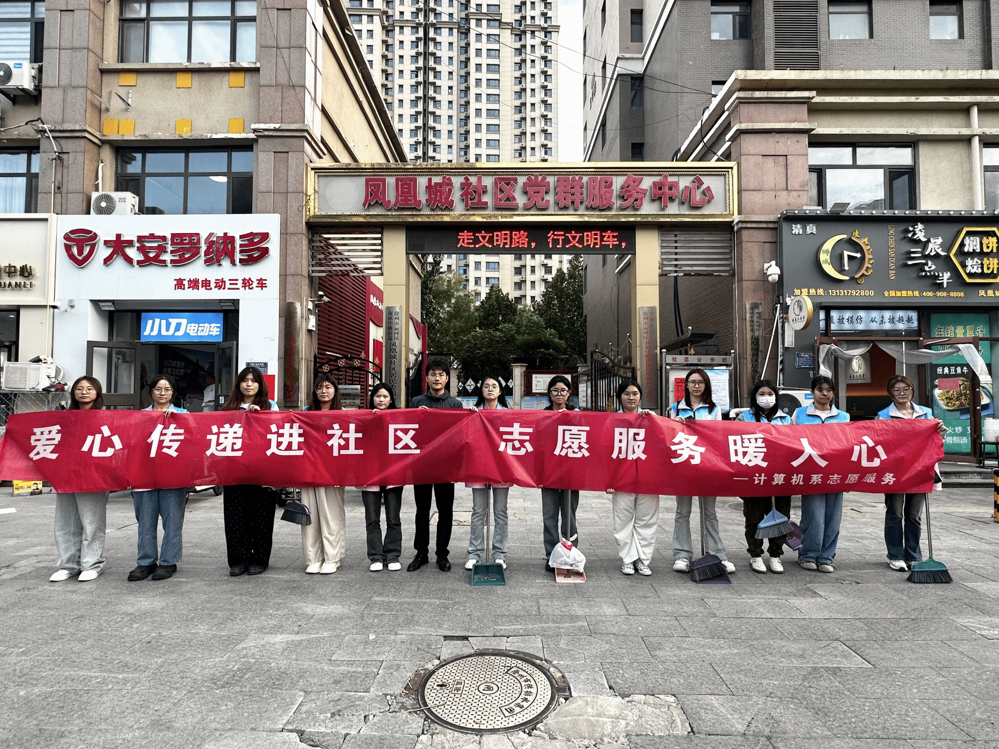 9月14日,计算机系学生二支部赴凤凰城社区开展“爱心传递进社区,志愿服务暖人心”志愿服务活动,支部书记张建武老师与支部委员杨阔带队前往。