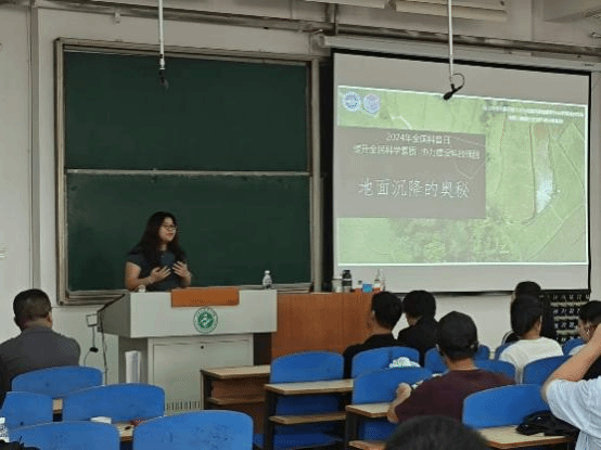 活动邀请中国地质环境监测院工程师宁迪作“地面沉降的奥秘”的主题科普讲座,她向大家介绍了河北沧州平原区地下水与地面沉降国家野外科学观测研究站和地面沉降综合防控科普研学基地情况,并将地面沉降的危害、影响因素等知识点结合典型案例为广大师生进行科普讲解,讲解内容生动有趣,引人入胜。