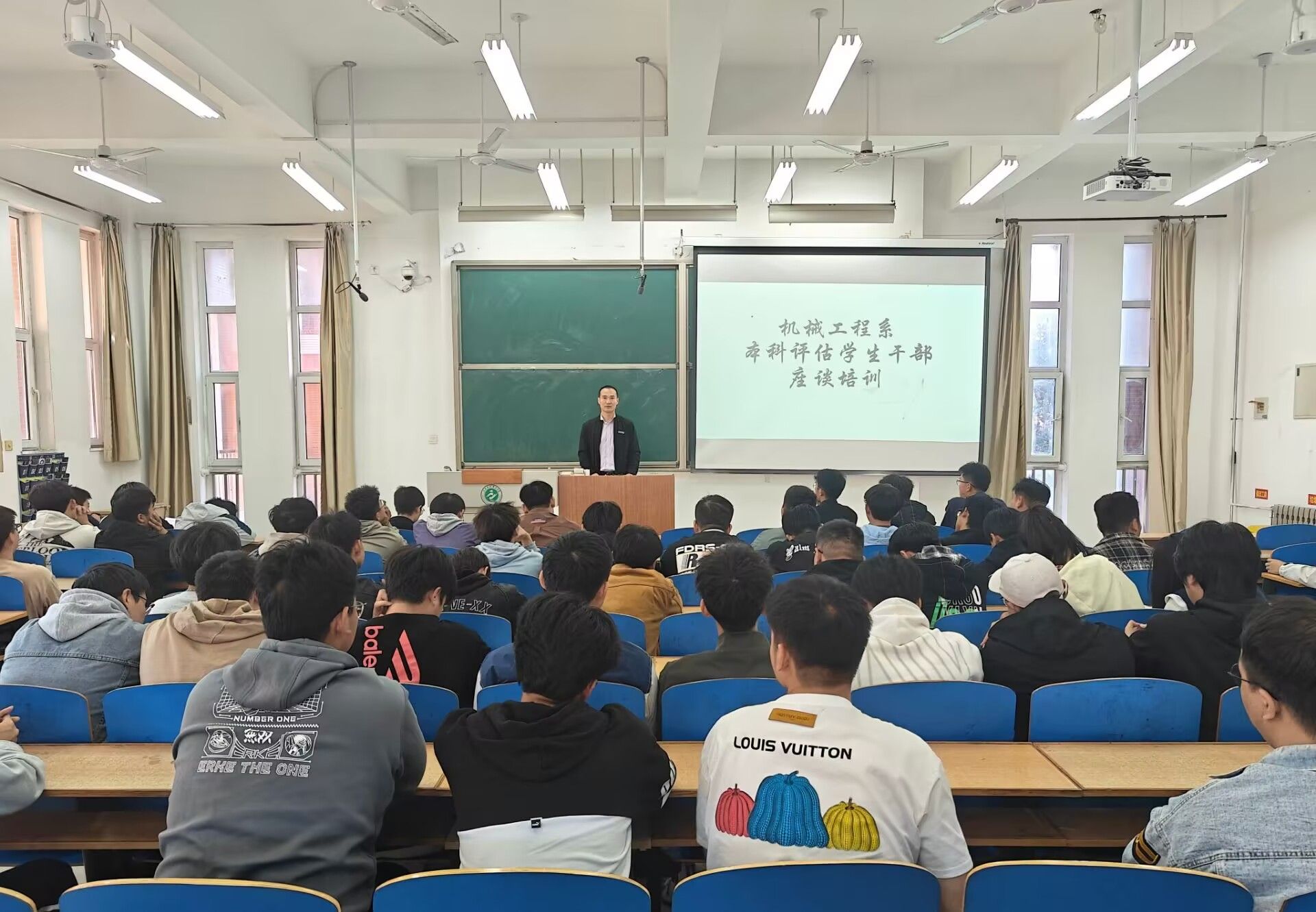 10月10日,为做好迎接本科教学合格评估工作,机械工程系党总支书记荆秀萍、副书记杨学智、系团委书记贺欢呼组织全体学生党员、学生干部、入党积极分子积极分子和优秀学生开展学生座谈培训活动。
