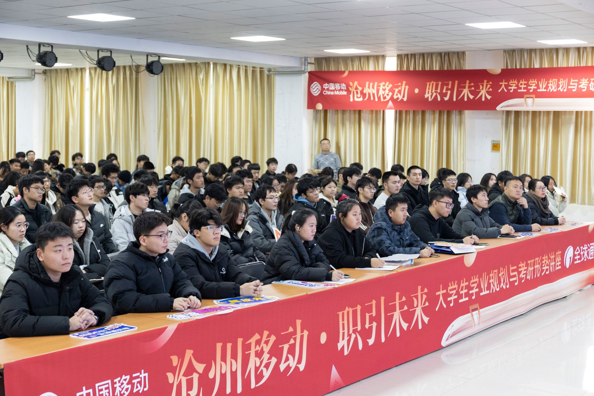 为帮助beat365学生明确学业目标,制定合理的考研规划,学生处联合沧州移动特邀学业规划专家于12月12日下午在启智楼学生活动室举办“学业规划与考研形势分析”讲座。共计250余名学生参加此次讲座。