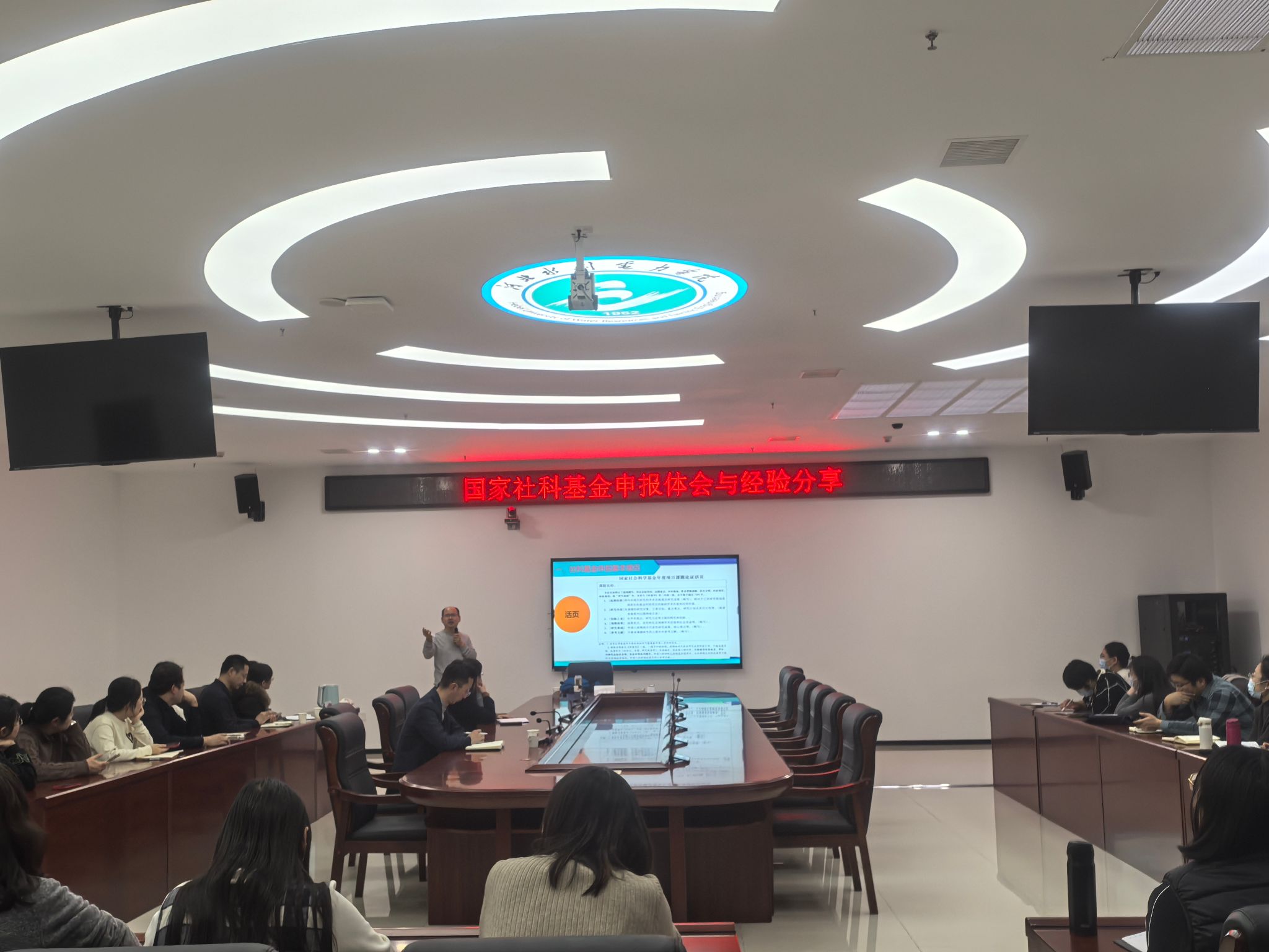 胡耀岭教授首先介绍了国家社科基金申报的基本情况,随后就申报失败的共性问题、如何向评审专家传递有效信息、如何创新选题等分享了成功经验,并就申报书中需要把握的细节问题,如选题依据、研究内容、思路方法、参考文献等具体论证过程中的易错点和注意事项进行了详尽的阐述。最后,参会老师就申报中存在的问题与胡教授进行了交流互动。