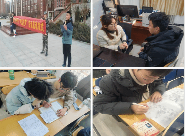 12月初学生处下发《关于加强期末考试考风考纪教育的通知》统一思想严明考风考纪教育工作要求,各系召开专项会议周密部署,加强学业帮扶和考试过程监督检查,引导学生树立正确的考试观念。各班密切关注学业困难学生状况,通过心理疏导和原因分析,实施分类指导;组织学生骨干与学业困难学生结成帮扶对子,提供学习方法指导和学习辅导;开展学生党员、学生干部考试中主动亮明身份活动;发布“诚信考试倡议书”并组织学生签署“诚信考试承诺书”。