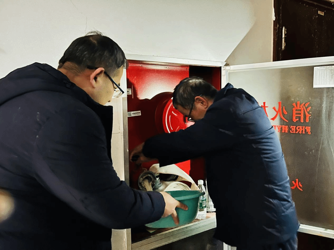综合组先后深入图书馆、大学生活动中心、超市、综合服务楼、各教学楼和学生公寓以及消防水箱间、消防控制室、图书馆配电室等重点部位进行了消防安全隐患检查。重点检查了火灾自动报警系统、自动喷淋灭火系统、防排烟系统、防火卷帘、应急照明装置、疏散指示标志、消火栓、灭火器、气体灭火系统等消防设施,经检查消防设备设施均正常运行。综合组在2号学生公寓摁响了消防手动报警按钮模拟火灾发生,消防控制室值班人员迅速赶到报警现场进行了处置。