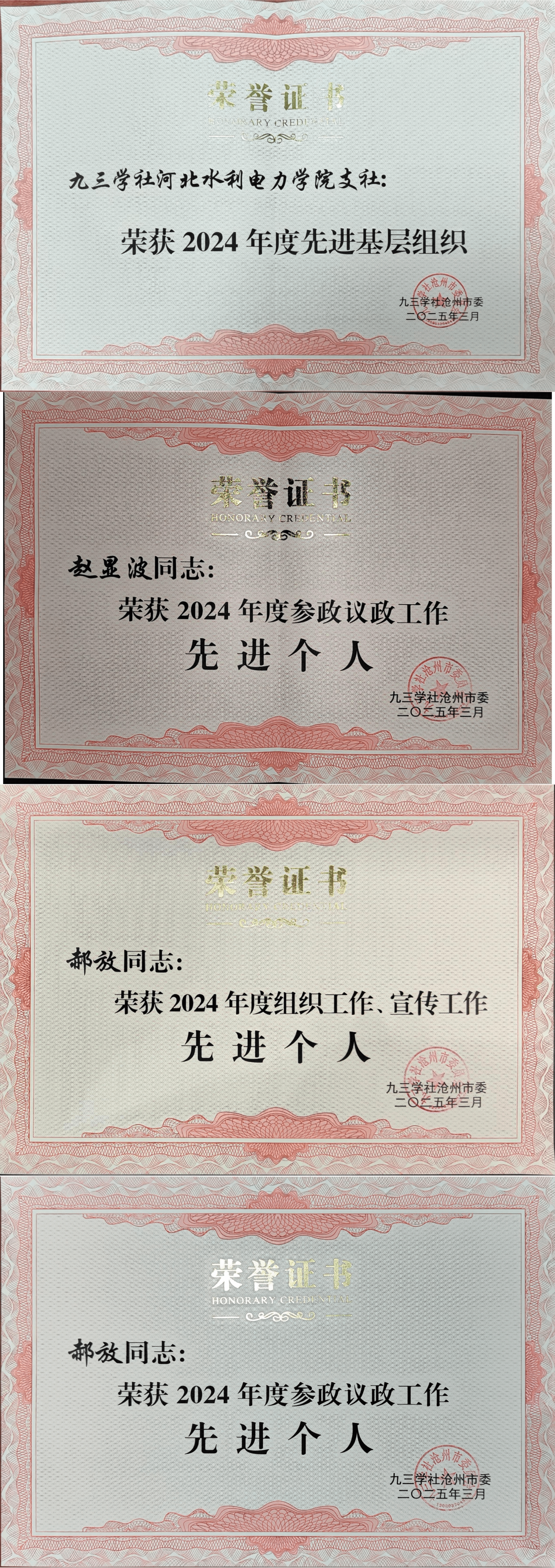 beat365支社凭借突出的工作成效荣获“2024年度先进基层组织”称号;支社副主委郝放副教授获评“2024年度参政议政工作先进个人”“2024年度组织工作、宣传工作先进个人”;赵显波博士获评“2024年度参政议政工作先进个人”。这些荣誉的取得,既是对支社建设发展的充分肯定,更是学校党委高度重视、精心指导的成果体现。