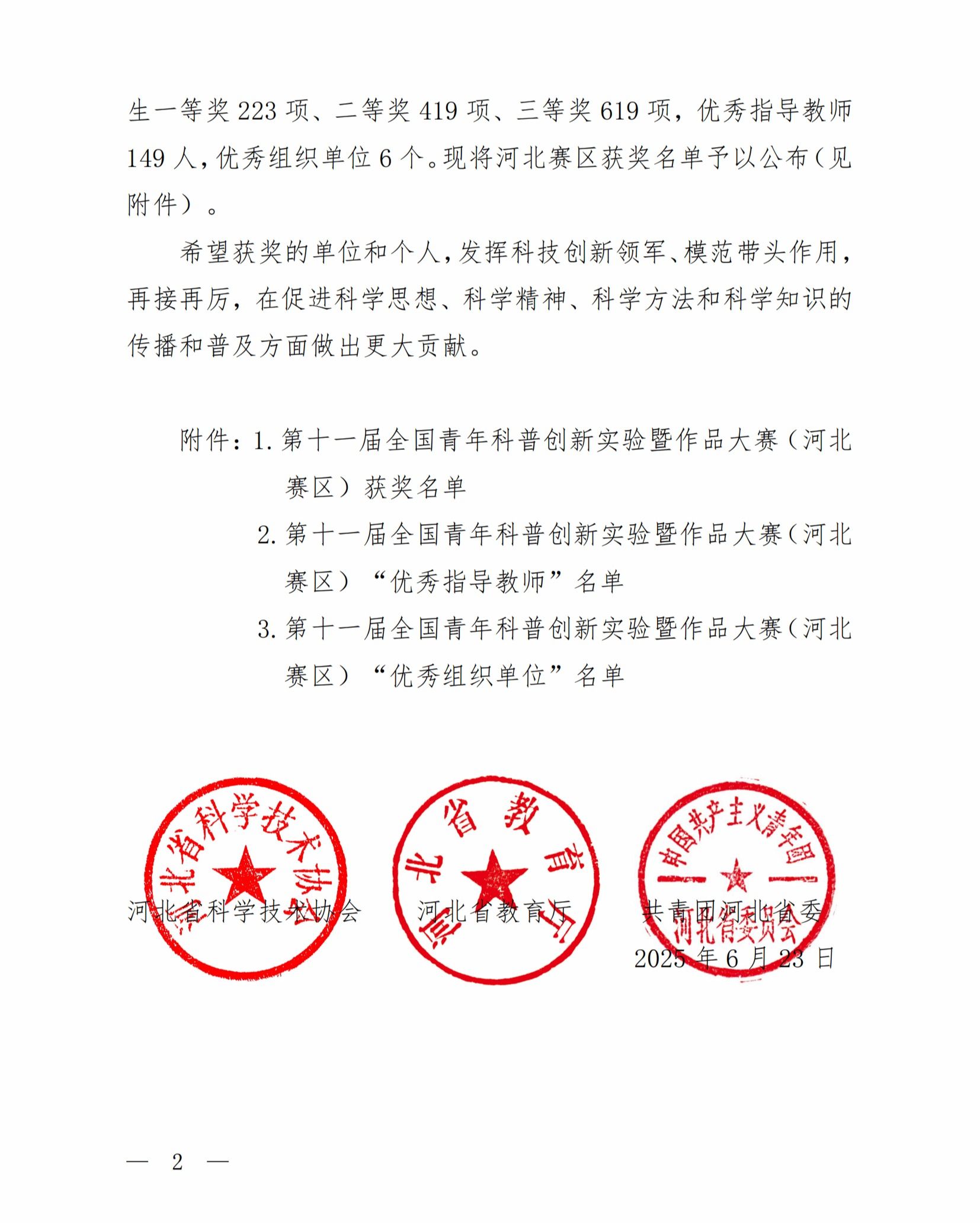 在第十一届全国青年科普创新实验暨作品大赛(河北赛区)比赛中,beat365学子以卓越表现脱颖而出,10支参赛队伍全员获奖,共斩获6项一等奖、3项二等奖及1项三等奖。其中,电力工程系于雪、侯甜甜两位教师凭借专业指导荣获“优秀指导教师”称号,为参赛团队提供全方位支持。