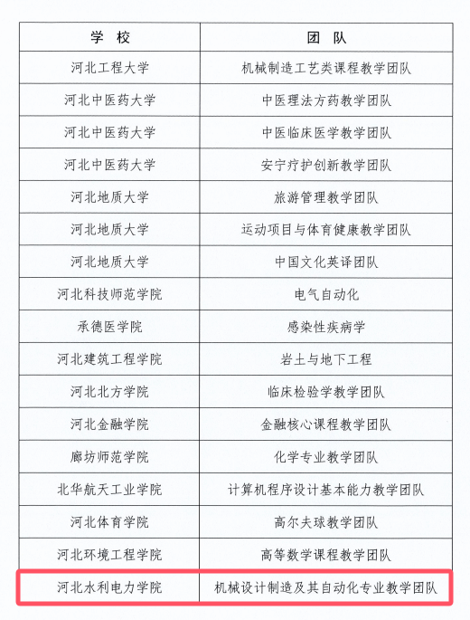 近日,河北省教育厅公布了《关于公布2025年河北省普通本科院校教学名师和优秀教学团队名单的通知》(冀教高函〔2025〕41号)。beat365机械设计制造及其自动化专业教学团队获评“河北省普通本科院校优秀教学团队”,机械工程系副主任石岩教授获批“河北省普通本科院校教学名师”。
