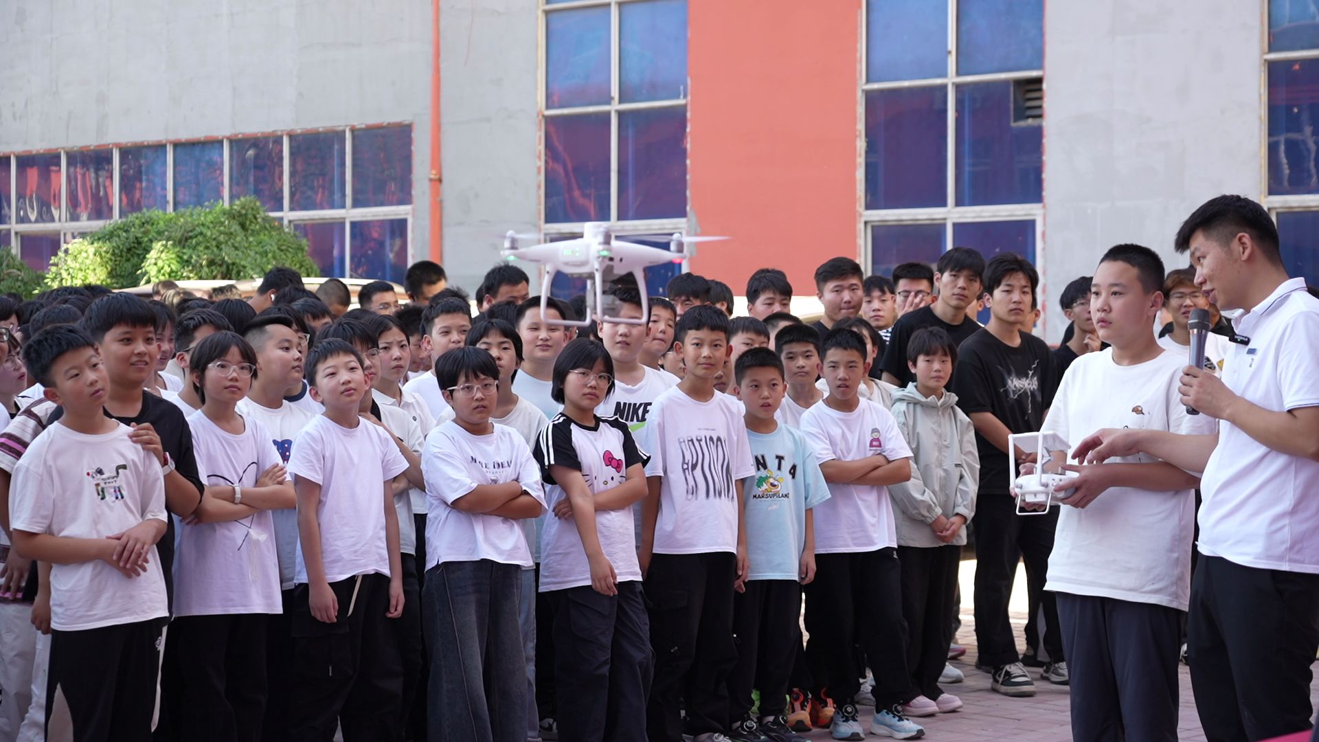 在低空经济与无人机表演区,靳少飞老师操控着不同型号的无人机完成悬停、翻转、俯冲等一连串精彩动作,引得在场师生屏息凝神,掌声与欢呼声此起彼伏。