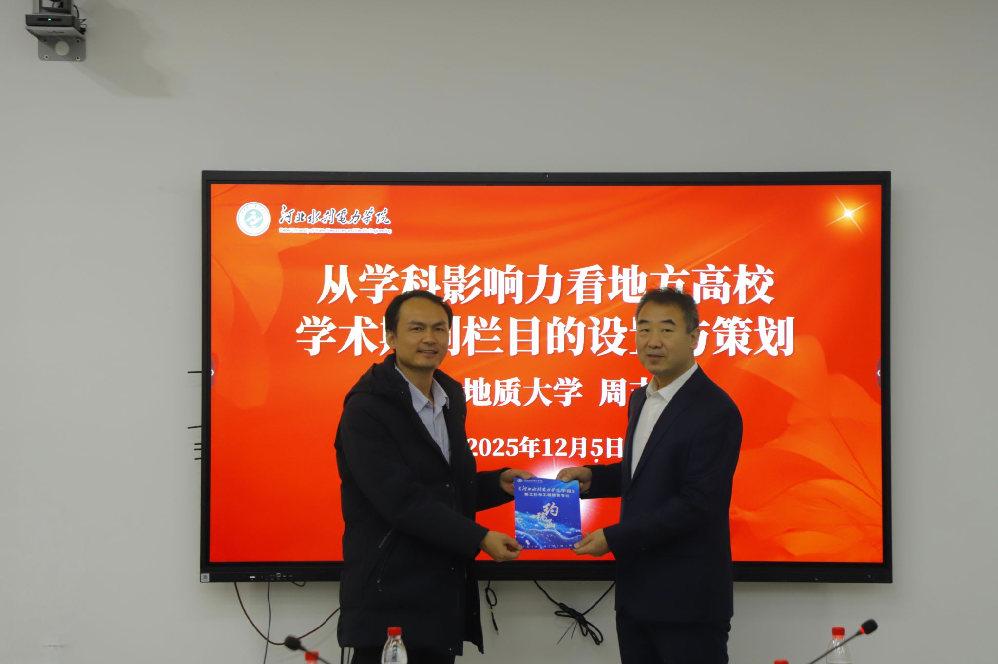 会议随后举行了专栏约稿函发放仪式,董志良向汇报教师代表、院系负责人及特邀专家周吉光颁发约稿函并合影留念。